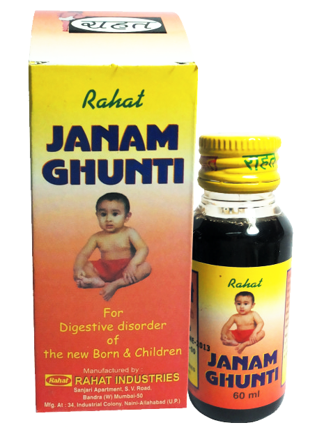 Rahat Janam Ghunti is prepared from choicest herb converted into pure sugar based syrup. Rahat Janam Ghunti is really useful in indigestion, gas formation, vomiting, bulging out of tummy, diarrhea, constipation, dullness, child’s repeated and continuous weeping, loss of appetite, loss of weight or not gaining weight, general weakness loss of natural sleep.